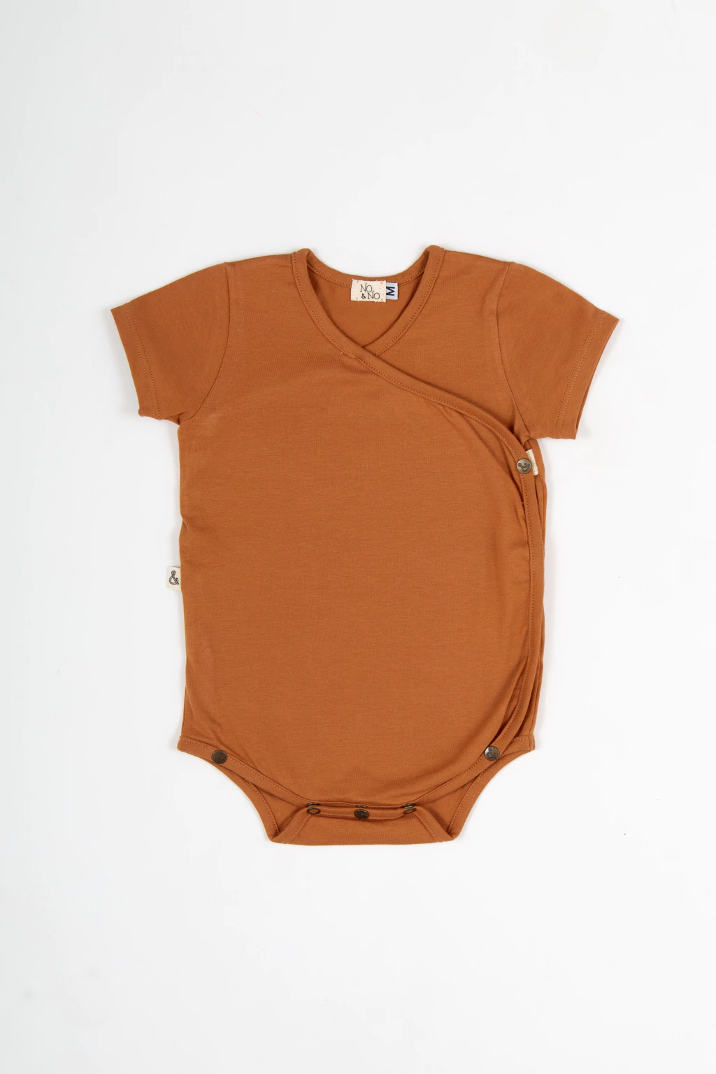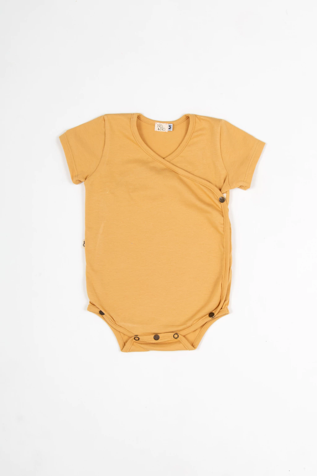 Zero drama na hora de vestir. O body kimono tem abertura frontal com botões, não precisa passar pela cabeça e garante praticidade máxima para os primeiros meses.