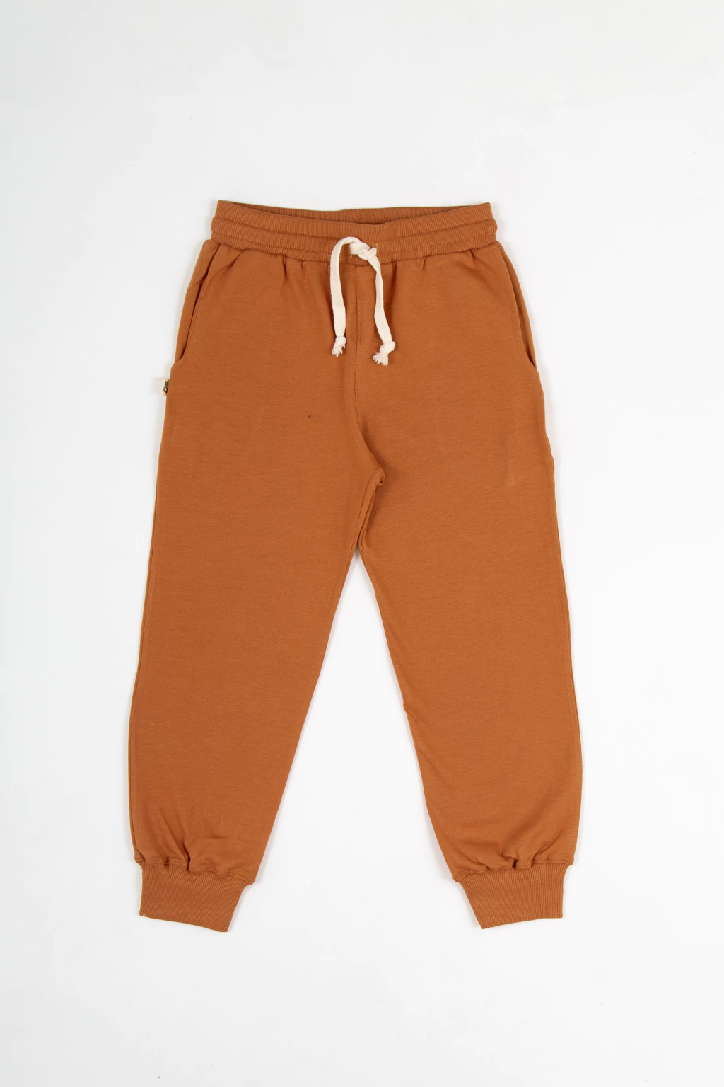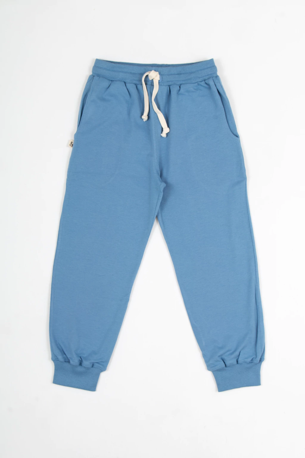 Uma calça que resolve qualquer look. Modelagem reta, punho na barra e cintura com cadarço ajustável. Feita em malha conforto de algodão sustentável, garante liberdade nos movimentos e muito conforto para brincar o dia todo.