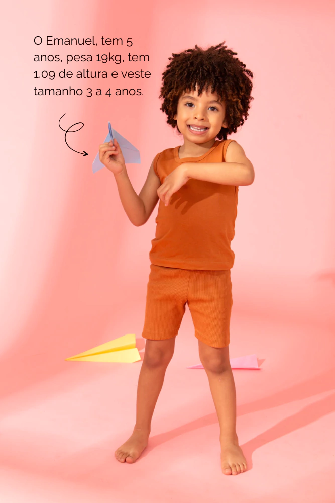 Um combo prático e versátil para o dia a dia. Regata em malha conforto e short ciclista em canelado macio: conjunto unissex, confortável e perfeito para o guarda-roupa de qualquer criança.