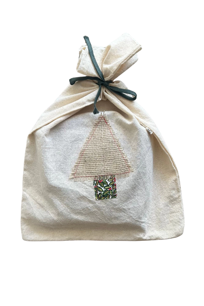 A Embalagem Nó&Nó em algodão cru com aplicação de árvore em juta é perfeita para embalagens especiais, lembranças, produtos da marca ou presentes de fim de ano. Disponível em três tamanhos, ela funciona como um saco tradicional: o fechamento é feito com cadarço costurado na parte externa, permitindo amarrar com um laço e deixando aquela “gola” charmosa na parte de cima.